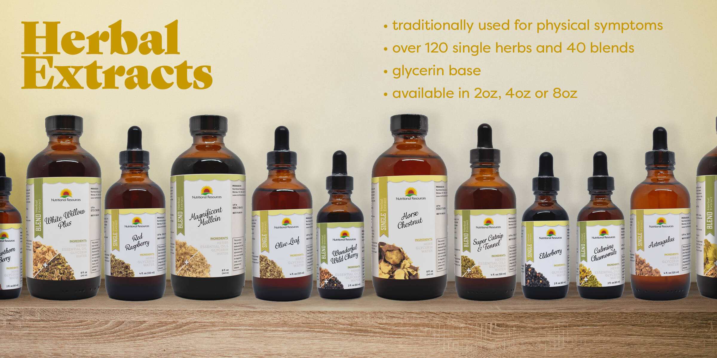 Nutritional Resources offers many high-quality herbal extracts. Our unique process to manufacture these alcohol-free liquid herbs uses glycerine to offer a kid-friendly natural product.
