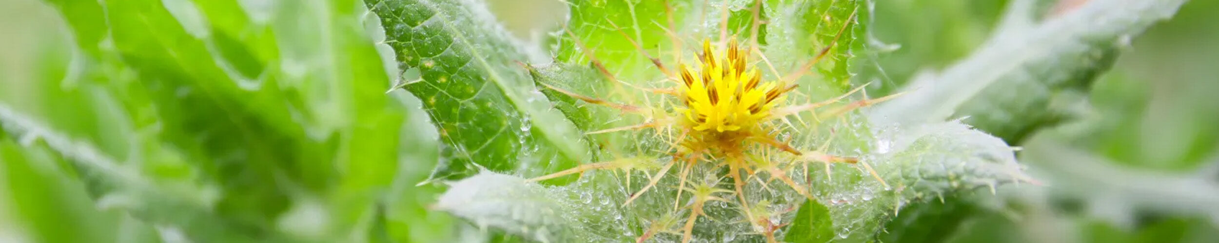 - Cnicus benedictus is a perennial herb with spiny, gray-green leaves and bright yellow flowers, native to the Mediterranean region. The plant thrives in dry, rocky soils and open fields, often found in Europe and parts of North Africa.