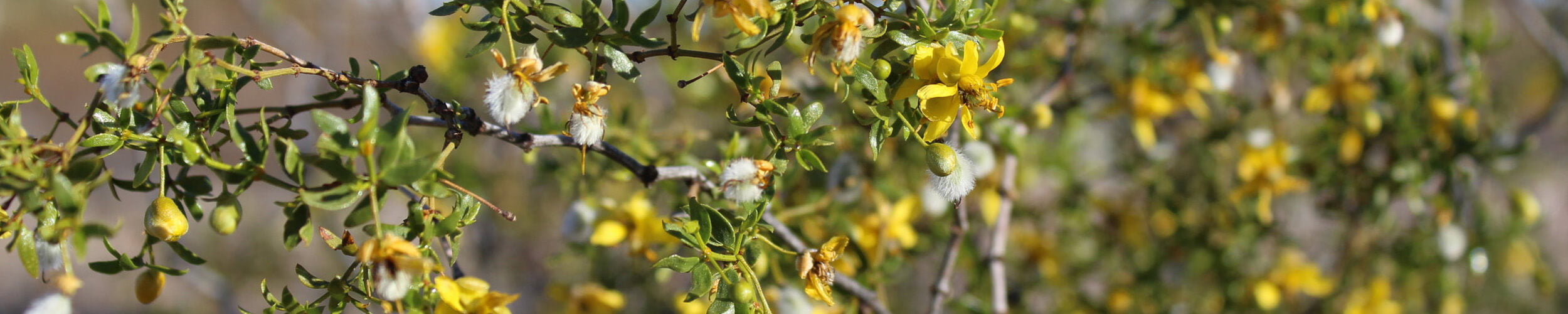 - Larrea tridentata is a hardy, evergreen plant characterized by its woody stems, small leathery leaves, and yellow flowers. It is commonly found in arid regions such as the southwestern United States and northern Mexico, thriving in desert scrub and rocky hillsides.
